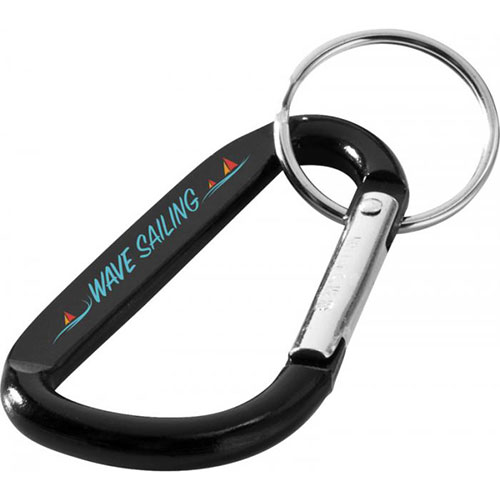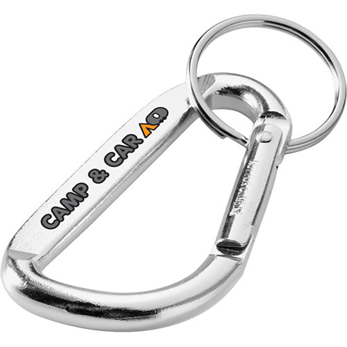 Ein kleiner Karabiner-Schlüsselanhänger der überall halt findet. Er ist aus leichtem und stabilem Aluminium gefertigt und hat ein auffälliges Metallfinish. Timor bietet verschiedene Möglichkeiten, um ein sichtbares Logo anzubringen. Der Artikel kann 4-farbig bedruckt werden. Das Preisbeispiel untestehend ist mit einem 1-farben Transferdruck kalkuliert. Der Karabiner ist nicht zum Klettern geeignet.