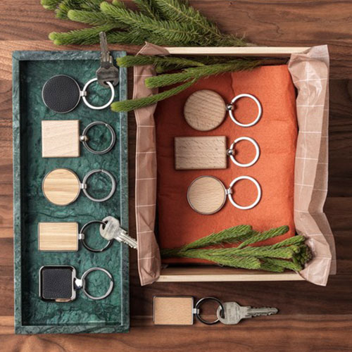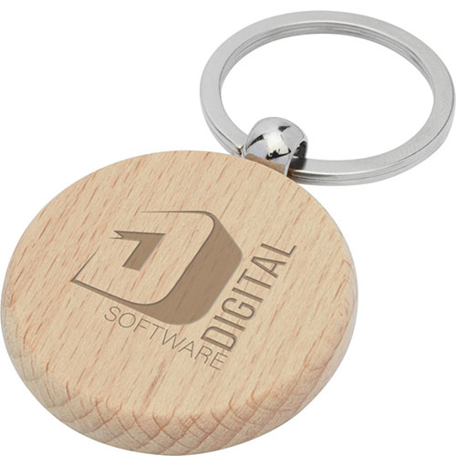 Runder Schlüsselanhänger aus Buchenholz, geliefert in einem braunen Umschlag aus recycletem Kraft-Papier. Der Schlüsselanhänger hat einen Durchmesser von 4 cm. Hergestellt für Lasergravur. Weitere Formen und Grössen auf Anfrage.