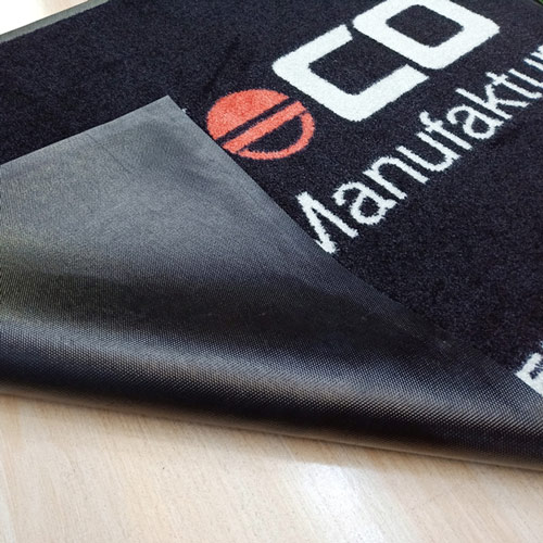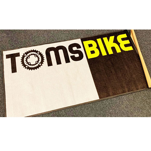 Die individuell bedruckte Schmutzschleuse für den Eingangsbereich des Ladens, als Garagenteppich in der Werkstatt oder als exklusive Präsentationsmatte für das verkaufte Bike. Die robuste und rutschfeste Gummiunterlage ist öl- und gasbeständig. Sie schützt somit den Werksattboden vor ätzenden Strassenchemikalien und Werkstattflüssigkeiten. Der Teppich ist in drei Standardgrössen erhältlich. Spezialgrössen und Sonderformen auf Anfrage, max. 200 x 600cm. Maschinenwaschbar. Nylon Florhöhe 5mm, 720g/m2, inkl. Gummi 2'800g/m2. TÜV geprüft, SGS, BSCI, Oeko-tex100, ISO9001, ISO14001, erfüllt REACH Standards.