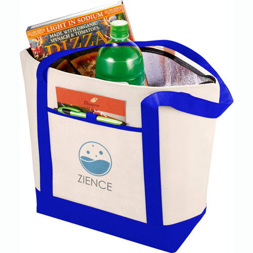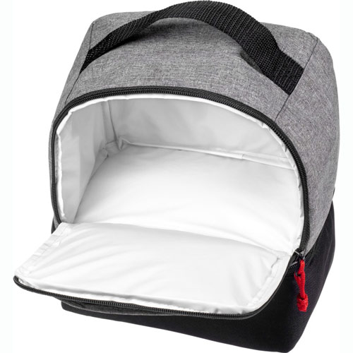 Die Dual Lunch-Kühltasche hat zwei getrennte Reissverschlussfächer, einen praktischen Tragegriff und ein trendiges Colourblocking-Design mit kontrastfarbenem Reissverschlussanhänger.