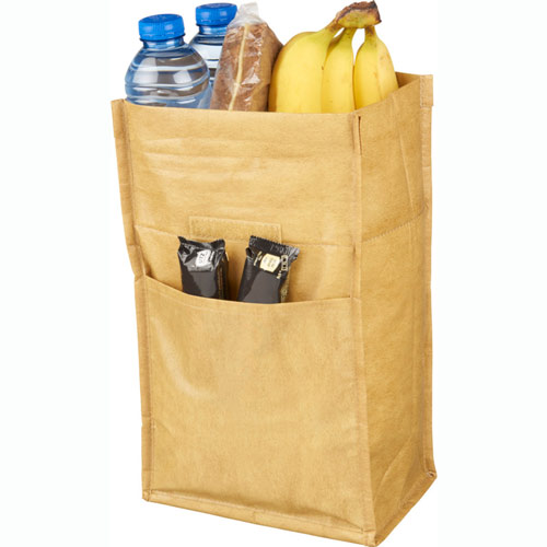Kühltasche im braunen "old school" Paper-Look! Wasserabweisende Aussenhülle, Isoliertes Hauptfach mit Klettverschluss zum einfachen verschliessen.