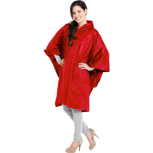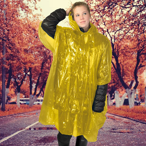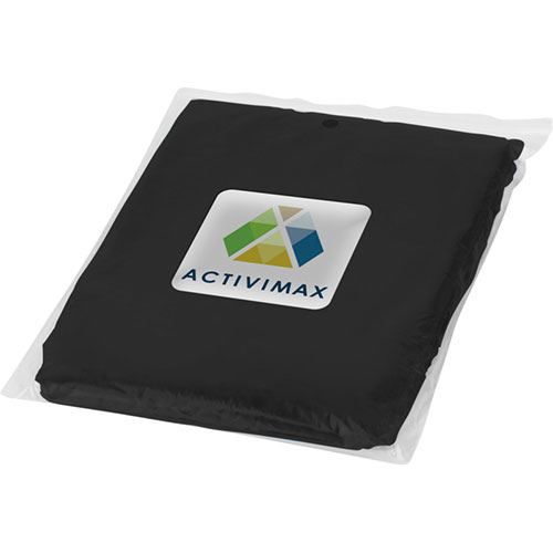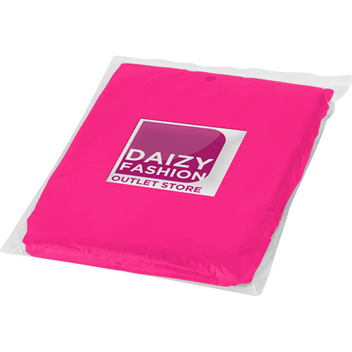 Ein faltbarer Poncho mit Kapuze für unerwartete Regenschauer bei jeder Outdoor-Aktivität. Der wiederverwendbare Poncho ist 100x130 cm gross und hat auf jeder Seite einen Knopfverschluss. Erhältlich in vielen verschiedenen Farben mit einer grossen Dekorationsfläche auf dem Beutel.