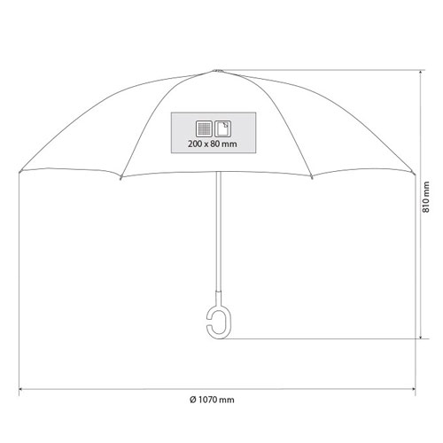 21.5" Schirm mit 8 Segmenten, automatisches Öffnen und Schliessen per Knopfdruck. Metall Schaft und Speichen. Inkl. Schutzhülle.