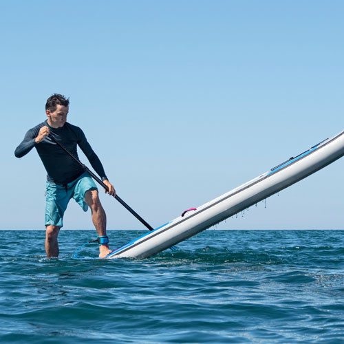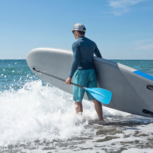 Bequemes langarm SUP Shirt mit Rundhalsausschnitt. Verlängertes Rückenteil. UVP-Schutz: Helle Farben bis UVP 30, dunkle Farben UVP 40+