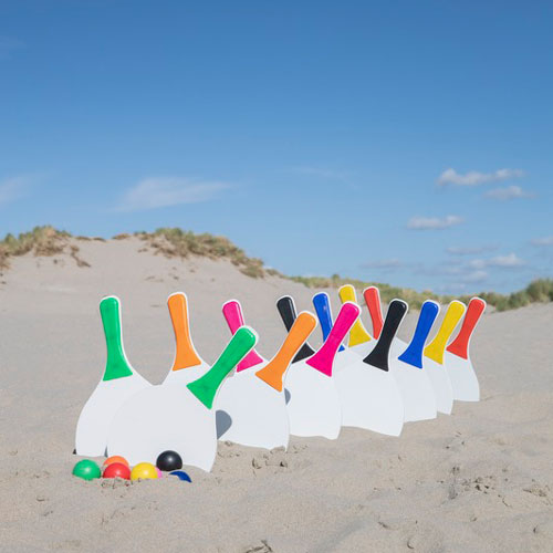 Immer Spass mit diesem Strandspiel-Set, das in einer Vielzahl von Farben angeboten wird. Dieses strapazierfähige Strandspiel-Set ist aus MDF-Holz mit farbigem PP-Griff gefertigt.