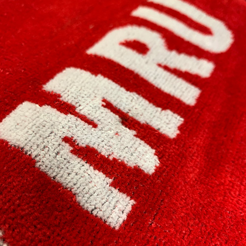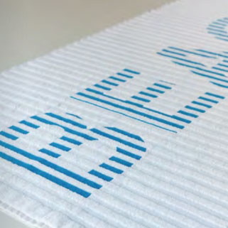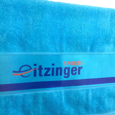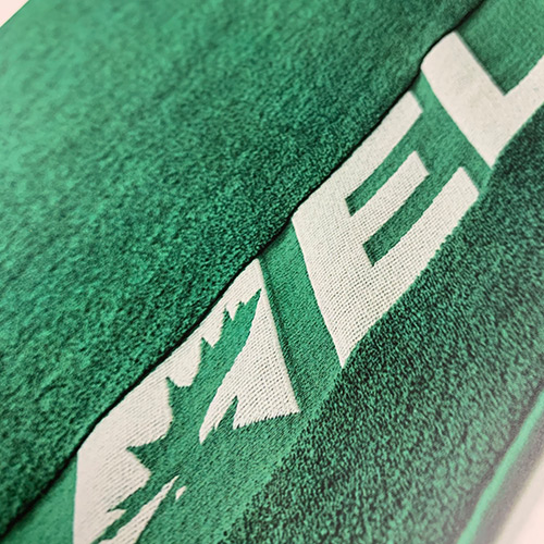 Zweifarbige Jacquardeinwebung aus Zwirnfrottier. Das klassische Werbetuch. Deine Werbebotschaft wird damit plakativ und grossflächig in Szene gesetzt. Auch in Kombination mit Reliefeinwebung oder Bordüreneinwebung möglich.