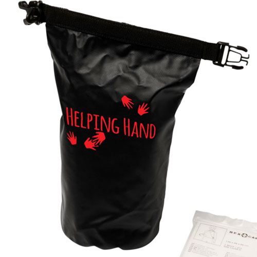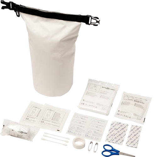 Robuste und strapazierfähige wasserdichte Blachentasche mit 30-teiligem Erste-Hilfe-Set. Der Rollverschluss mit Kunststoffschnalle sorgt dafür, dass der Inhalt trocken und sicher bleibt.