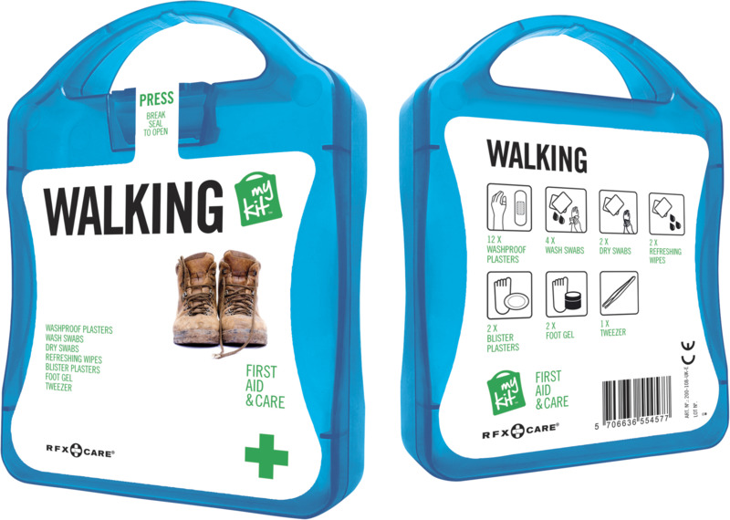 Ideales Set für jeden Spaziergänger. Mit diesem Set können kleine Unfälle und Blasen behandelt werden.