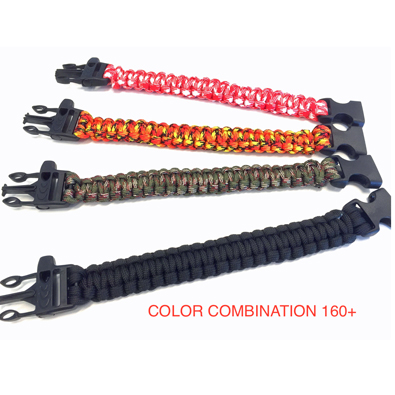 Tragfähigkeit bis 250 kg mit einem praktischen Schnallenverschluss welcher mit Ihrem Logo bedruckt werden kann. Alle drei Modelle mit Pfeiffe (CLASSIC, BOTTLE OPENER, FIRE STARTER). Die Kordel kann in Notsituationen aufgetrennt und vielfach verwendet werden. Die inneren Fasern können als Angelschnur oder Nähfaden gebraucht werden.