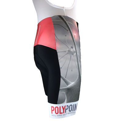 Kompromisslos. Die Trägerhose SPRINT "full print" wurde für die ambitionierten RennfahrerInnen und Rennfahrer entwickelt. Satter sportlicher Sitz, aus leichtem Muskel-Kompressionsmaterial MITI LYCRA. Beinabschluss POWERBAND 5.0 für besten Tragekomfort. Dekorative Flachnähte auf Wunsch. Langstrecken-Sitzpolster von DR PAD. Die ganze Hose kann, gegen einen Aufpreis, vollflächig bedruckt werden! NO LIMIT!